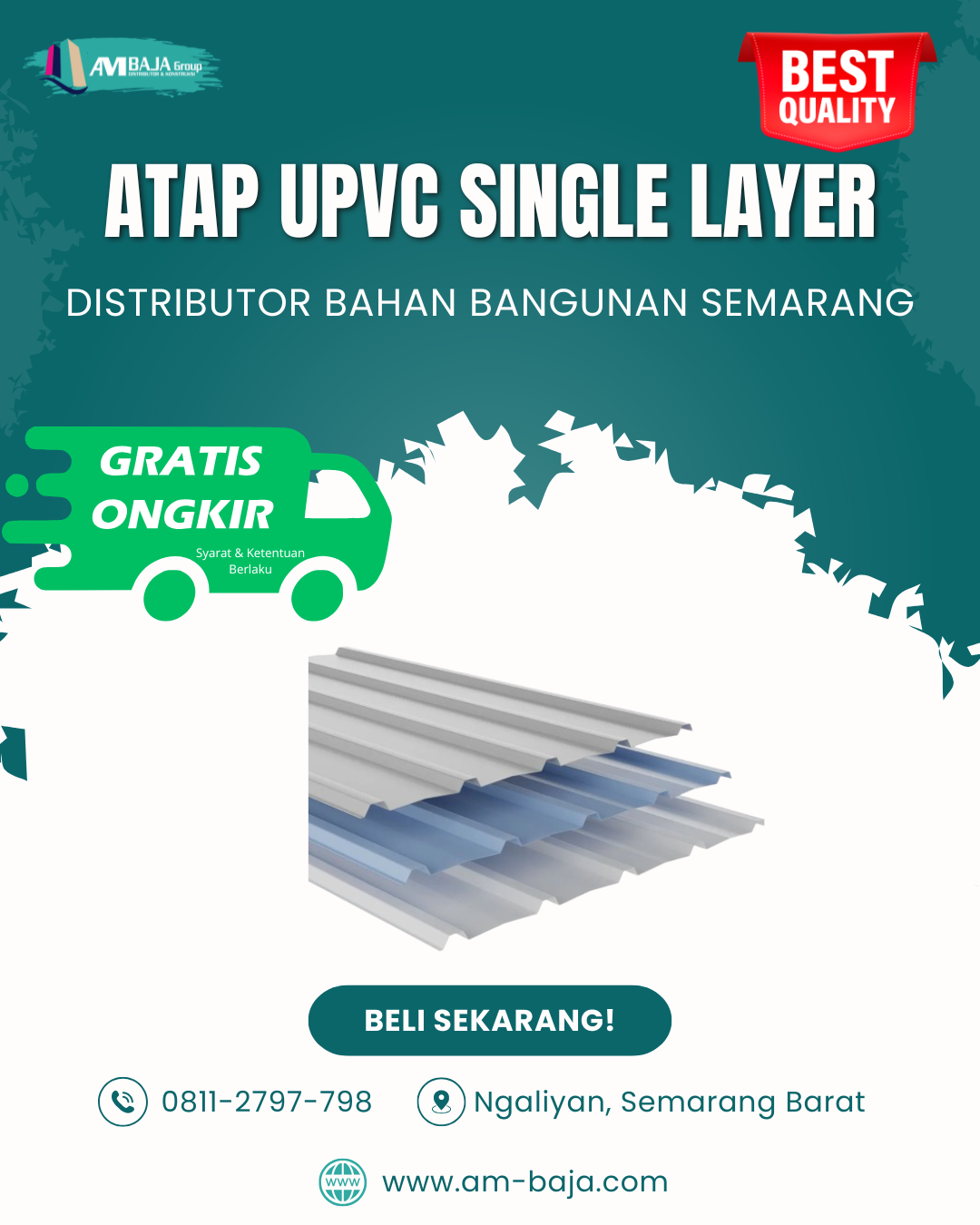Website : www.am-baja.com / www.toko-bangunan.id Alamat : Jl. Gatot Subroto, Purwoyoso, Kec. Ngaliyan, Semarang Barat (Dari gerbang Kawasan Industri Candi maju lagi 100 meter an) Google Maps : https://goo.gl/maps/fgf97Mjxhq5A9iZi8